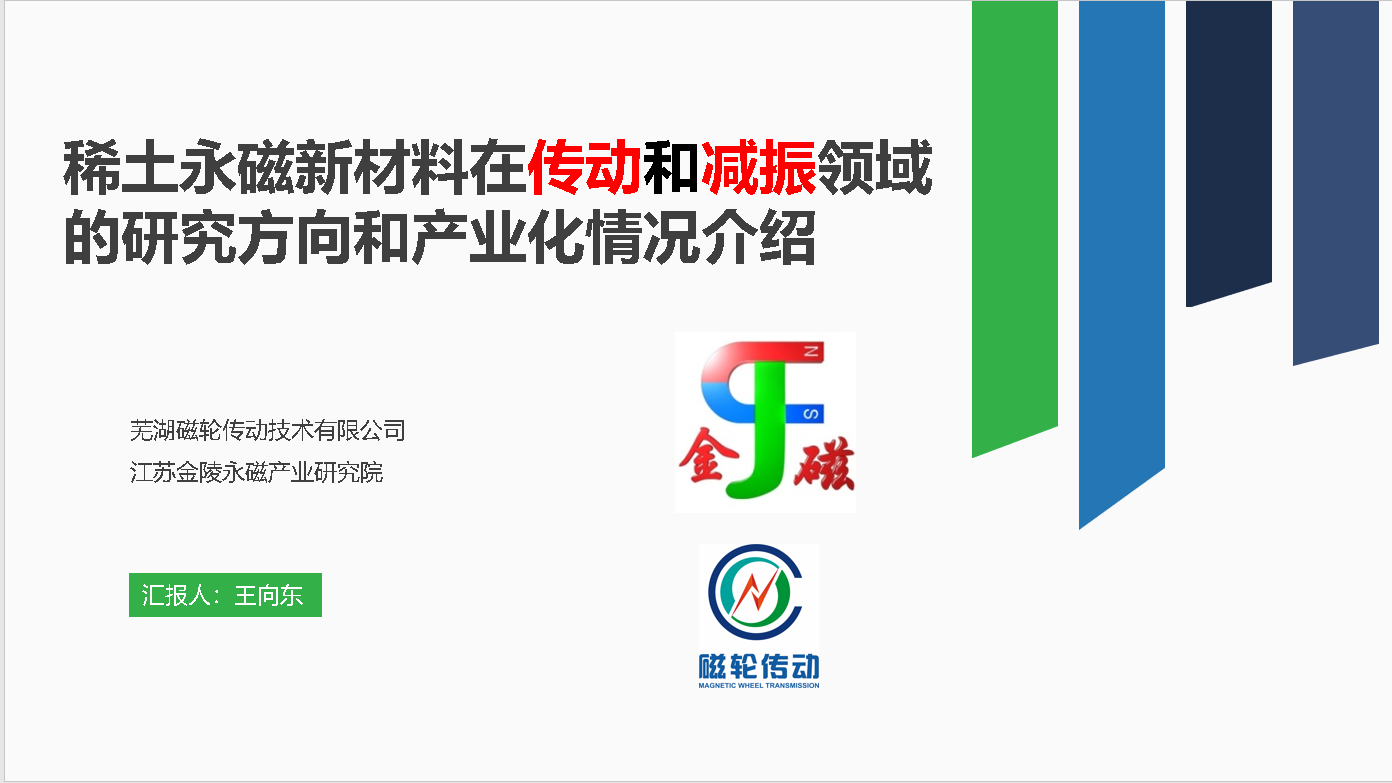 王向东作了题为“稀土永磁新材料高端应用技术介绍”,从磁科技、永磁传动、永磁弹簧三个方面介绍了永磁新材料在工业生产中的应用,重点介绍了近年来本人及研究团队在永磁传动方面的主要研究工作和取得的业绩成果,详细阐述了永磁传动中的研究热点和难点,以及永磁传动在工业化应用的成果及前景。