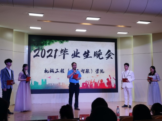 又到了一年的毕业季,为给毕业生在大学生生涯一个展示自我的舞台,表达母校对各位毕业生的祝福与期待。6月5日晚,机械工程学院(人工智能学院)在学术报告厅举办欢送2021届毕业生晚会,学院党委副书记李文江、何志恒,团委副书记苑雨露,毕业班辅导员吴敏及毕业生代表一起欢度难忘的夜晚。