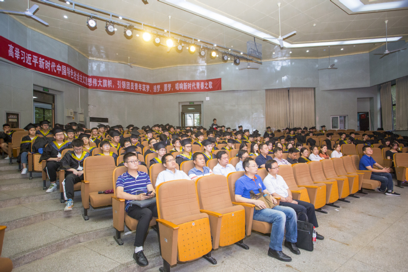 院长许德章代表学院致辞,他指出,精神品质是一所大学的“魂”,“做人、做事、做学问”的态度镌刻在我校全体师生和广大校友的心中,“尚德 敏学 唯实 惟新”是我校广大学子自觉践行的校训。希望同学们在新的征程上要用心做事,追求卓越,崇尚工匠精神;要低调做人,踏实做事,学会欣赏别人,尊重别人;要努力克服浮躁心态,杜绝好高骛远;要学会遵守规则,心存敬畏。