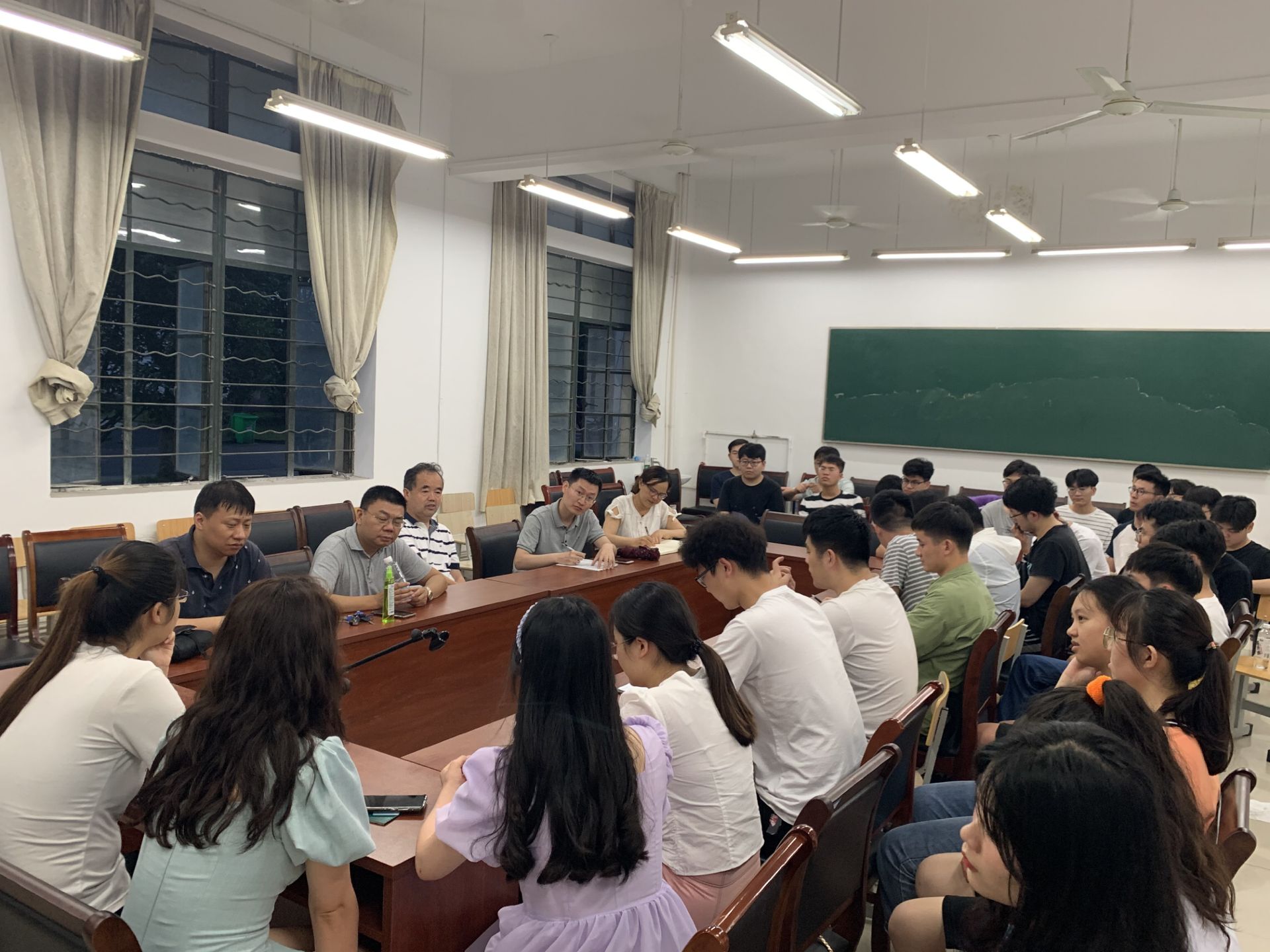 在机械系的座谈会上,许德章代表全体教师感谢同学们四年来对学院工作的支持,希望毕业同学能够对大学期间的学习与生活做出阶段总结,对学院学业指导、课程设置、学科建设、教师教学方法等方面存在的问题提出合理的建议与意见。于华、何慧娟两位教师代表对同学们做了毕业寄语,希望同学们戒骄戒躁,继续在工作或科研道路上秉持求知的初心,练就过硬本领,积极适应新的挑战,敢于担当、主动作为。