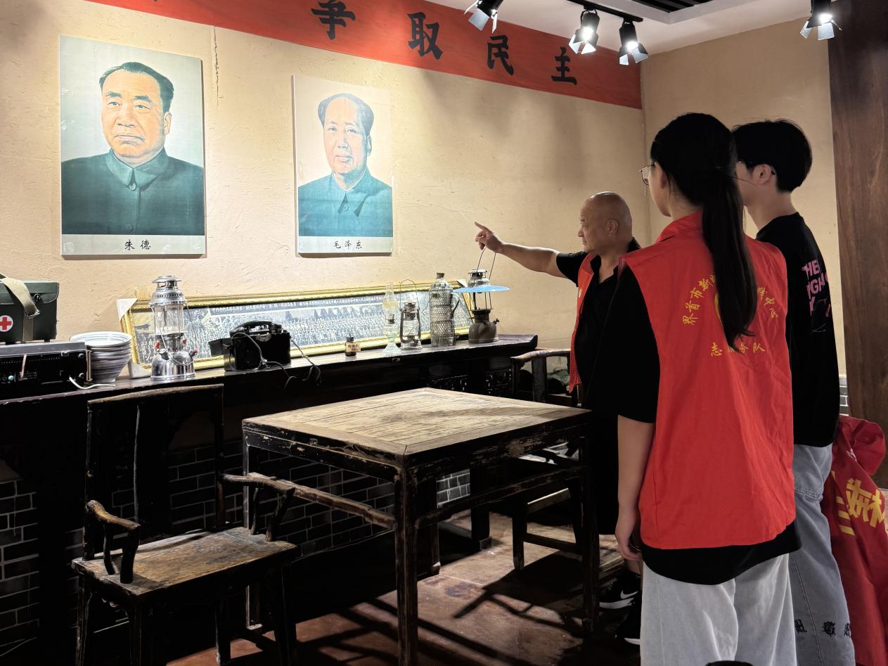 走进民俗馆,历史的气息扑面而来,志愿红与历史相遇。跟着讲解员的讲解,探寻“支援淮海战役”“巩固政权”的往昔,让红色记忆与农耕文化,在交流中鲜活起来。大学生志愿服务队成员们凝视“武装建设”“支援战役”的历史展板,先辈们的奋斗故事,在眼神交汇与倾听中,照进当下。我们身着志愿红,于历史图文间穿梭,感悟先辈热血,让红色传承在聆听中延续。