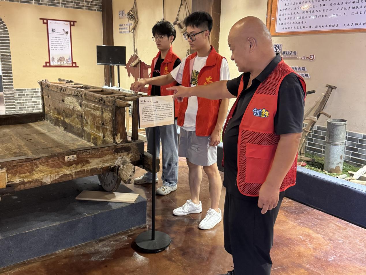 七月的泉阳镇,阳光正好。安徽工程大学暑期三下乡实践团队的同学们怀着激动的心情,在泉阳镇农耕民俗馆门口集结,古朴的建筑在绿树的映衬下,散发着浓郁的传统文化气息。团队成员们有序走进馆内,目光被馆内陈列的一件件充满岁月痕迹的老物件所吸引,探寻民俗文化的旅程就此拉开序幕。