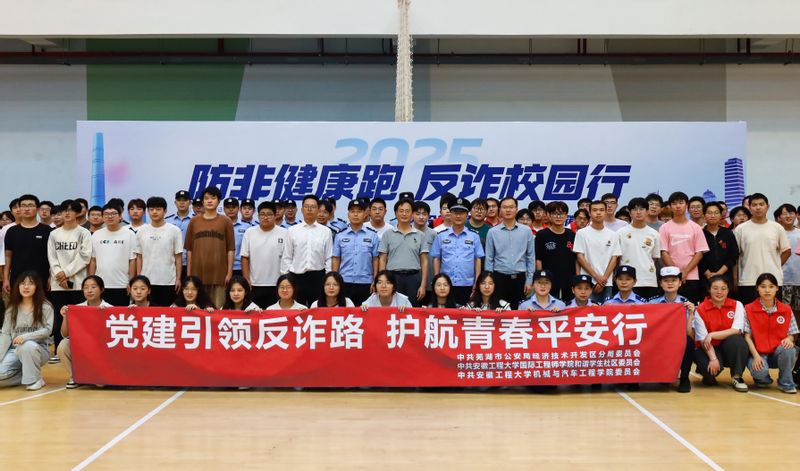 为切实提高校区学生反诈意识,营造全民反诈的校园氛围,9月24日,由芜湖市公安局经开分局主办,共青团芜湖市委员会、校区管委会、机械与汽车工程学院等单位联合承办的“防非健康跑 反诈校园行”反诈宣传活动在国际工程师学院校区风雨操场开展。