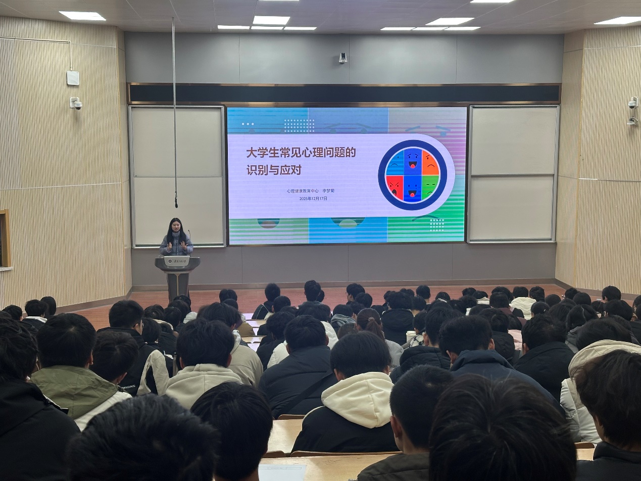 为献礼学校九十华诞,深入落实“一站式”学生社区专业力量下沉一线的工作要求,帮助同学们有效识别常见心理问题、掌握科学应对方法,学院于12月17日晚间在二教报告厅举行 “大学生常见心理问题的识别与应对”专题讲座。本次讲座特别邀请校心理健康中心李梦菊老师担任主讲人,与同学们共赴一场心灵成长之约。