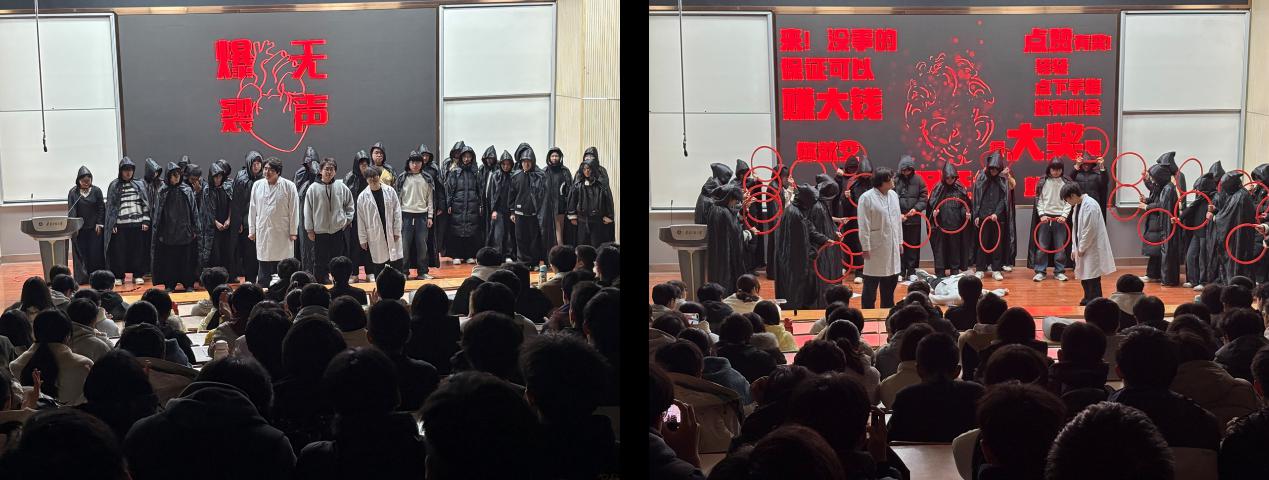 《爆裂无声》团队带来情景剧表演。演员以真实案例为蓝本,还原网络刷单、冒充熟人借钱、校园贷等高发诈骗场景,清晰展现骗子话术陷阱与受害者心理变化。贴近校园的剧情引发学子共鸣,大家直观感受到诈骗的隐蔽性与危害性,不少同学表示,情景剧让抽象诈骗套路更具体,比理论讲解更具冲击力。