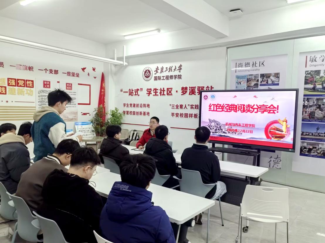 品读红色经典,传承红色基因。为丰富学生社区文化生活,推动优良学风和书香校园社区建设,12月22日,机械与汽车工程学院在7-9#一站式学生社区开展红色经典阅读分享交流活动,辅导员孙志鹏和20余名自我管理委员会成员、学生代表参加活动。