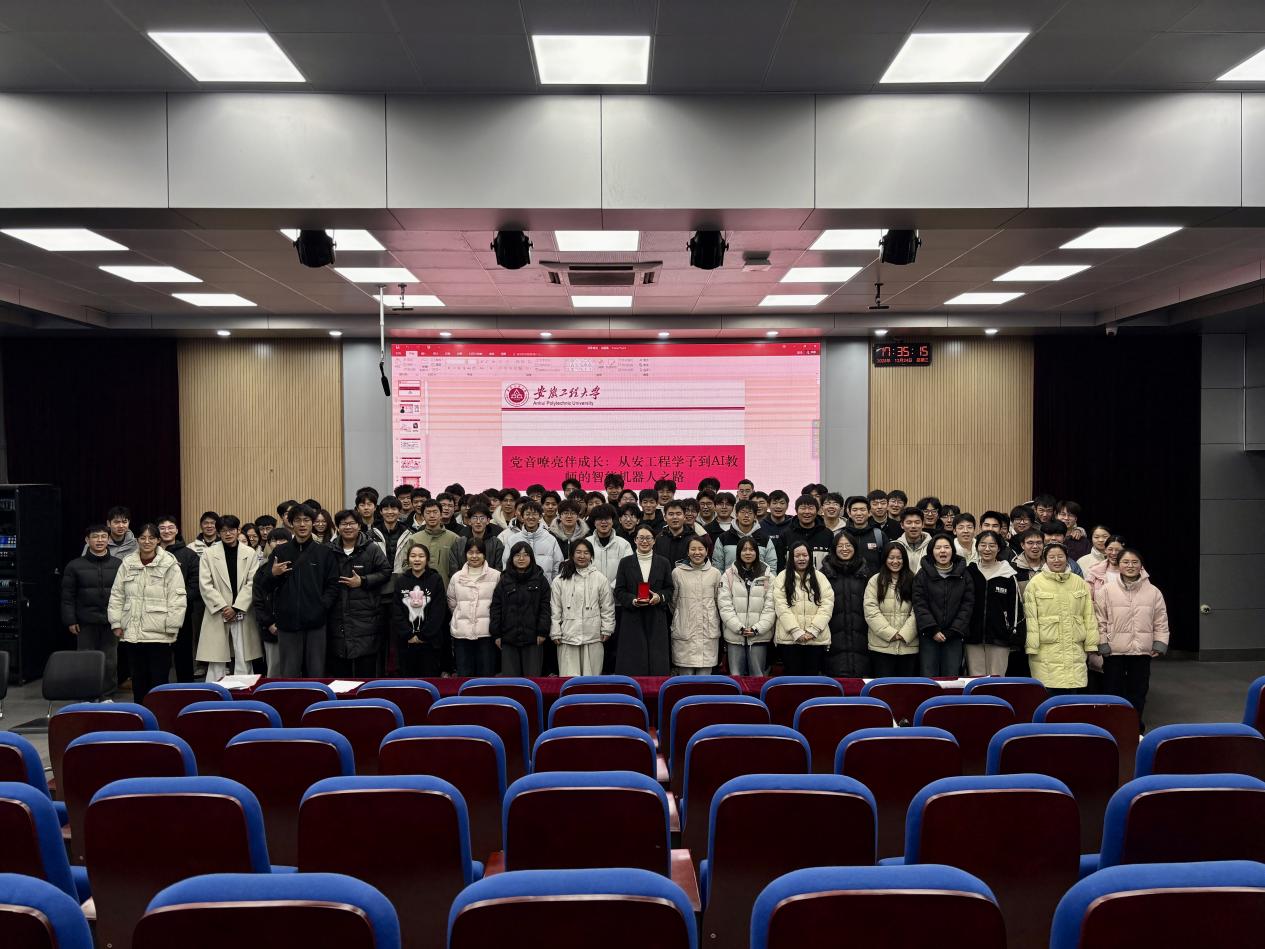 12月24日下午,机械与汽车工程学院在5教117报告厅举办“党音嘹亮”大讲堂活动。本期活动邀请人工智能学院徐潺潺博士作《党音嘹亮伴成长:从安工程学子到AI教师的智能机器人之路》专题讲座。学院大讲堂负责人时慕天、辅导员陈静、2025级青马班学员和递交入党申请书的学生骨干等100余人参会。讲座由时慕天主持。