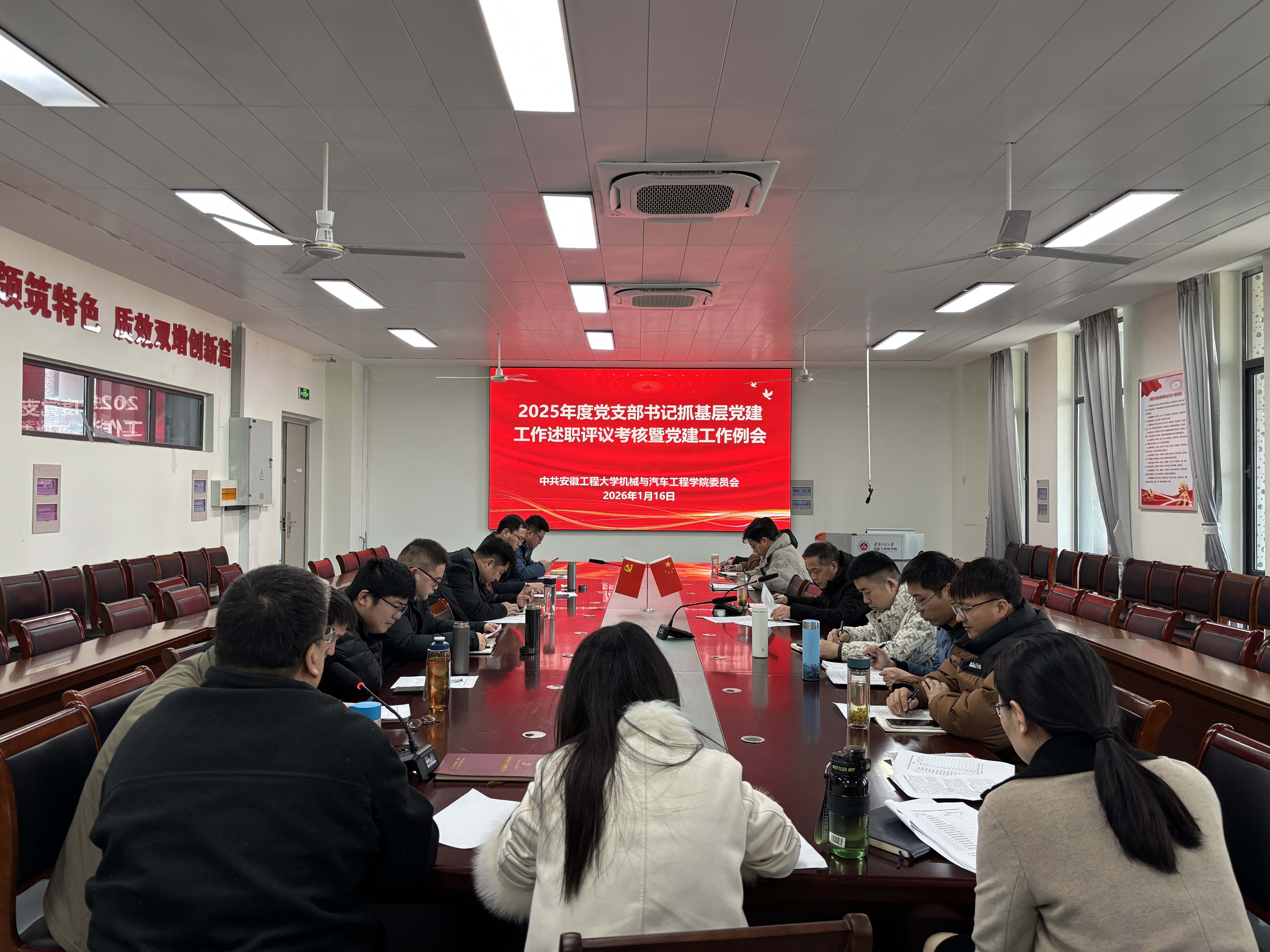 1月16日,机械与汽车工程学院党委在国际工程师学院3-1-204会议室召开2025年度党支部书记抓基层党建工作述职评议考核暨党建工作例会。学院领导班子成员、科级干部和各党支部书记参加会议。会议由学院党委书记魏长顺主持。