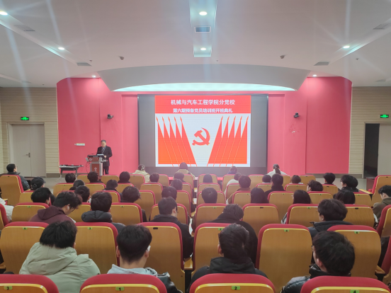 典礼结束后,培训班举行第一场专题讲座。机制专业学生第一党支部书记许典舟老师应邀为全体学员深入解读《中国共产党党员教育管理工作条例》,帮助学员进一步明确党员义务、规范自身言行、增强党性修养。