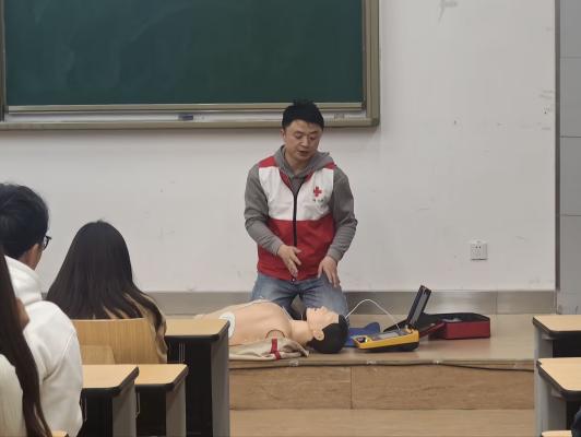 线上阶段,志愿者提前完成专业急救理论知识学习,提前熟悉心肺复苏与AED使用的基础原理、操作流程、注意事项等核心内容,为线下实操做好充分准备。线下实操环节,芜湖市红十字会王存祥现场结合真实案例,复盘急救现场关键要点,如CPR按压深度、频率、人工呼吸规范,以及AED设备操作、电极片粘贴、除颤流程等实操细节,并用人体模型进行全流程示范。