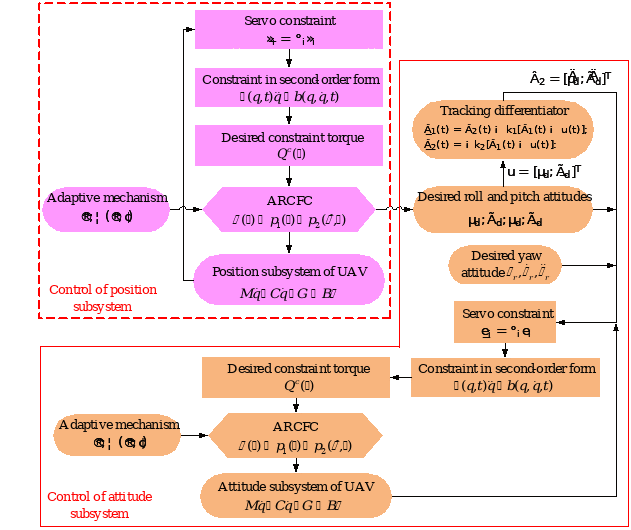 针对上述难题,本研究通过引入剪切映射误差变换函数(SMETF)从根本上规避了传统预设性能控制(PPC)中的奇异性问题,并设计基于非奇异预设性能约束的自适应鲁棒约束跟随控制器,在无需不确定性先验知识的条件下有效抑制快速时变不确定性的干扰。通过Lyapunov稳定性分析,严格证明了闭环系统的一致有界性和一致最终有界性,为无人机在复杂动态环境下的高精度、高可靠性控制提供了创新解决方案。