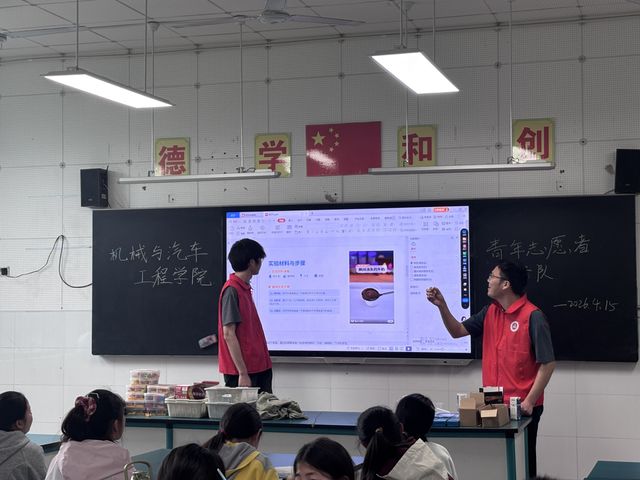 为普及科学知识、激发青少年探索兴趣,机械与汽车工程学院青年志愿者服务队4月15日联合芜湖市火龙岗小学精心策划开展趣味科普小实验活动。活动以生活化、互动化的形式,带领孩子们在动手操作中感受科学魅力,用青春力量传递志愿温度。